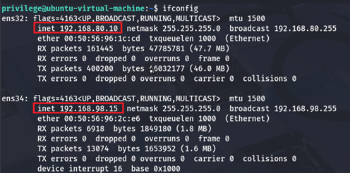 Dentro del servidor se observamosa dos interfaces de red, confirmando acceso a una red interna (192.168.98.0/24).