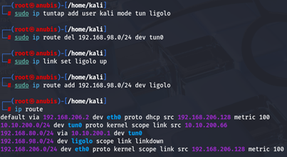 • sudo ip route add 192.168.98.0/24 dev ligolo