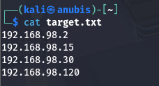 Cree un archivo txt con hosts en vivo en la red 192.168.98.0/24.