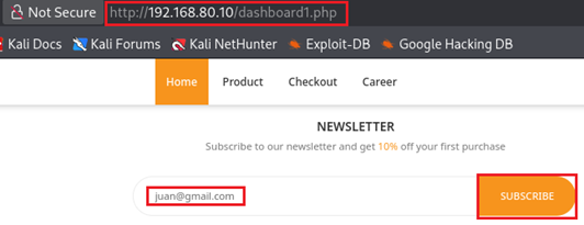 Se utiliza Burp Suite para interceptar la solicitud POST del formulario y revisar el parámetro EMAIL.